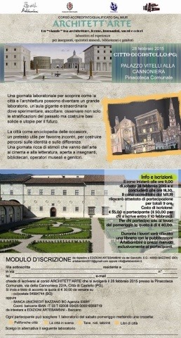 Città di Castello, 23.01.2015 – PoliedroCultura, in collaborazione con Artebambini, la rivista Dada e il Comune di Città di Castello, organizza un CORSO DI FORMAZIONE accreditato dal MIUR rivolto ad insegnanti, bibliotecari, operatori museali e genitori.