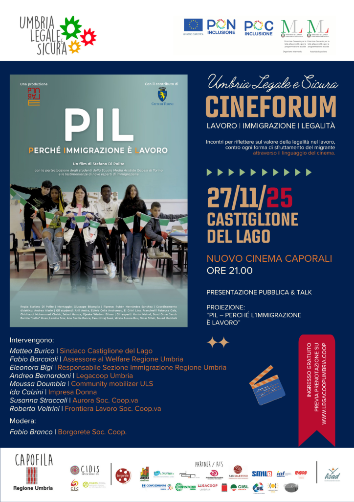 La serata prevede la proiezione del docufilm “PIL – Perché l’immigrazione è lavoro”, diretto da Stefano Di Polito. L’opera racconta in modo diretto e coinvolgente i percorsi lavorativi dei migranti in Italia, mettendo in risalto il loro contributo al sistema economico e sociale del Paese.
